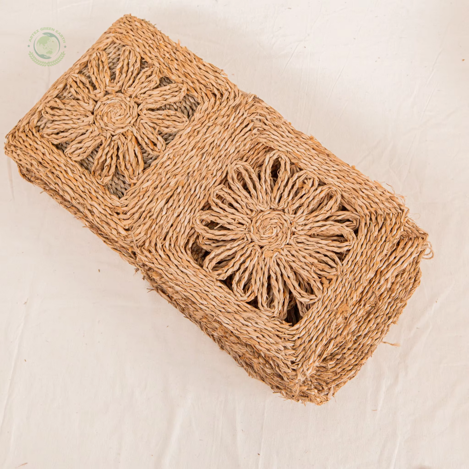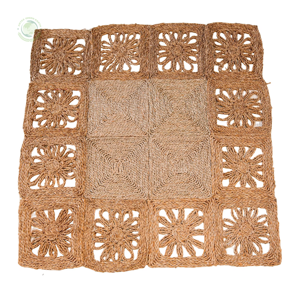 พรมหญ้าทะเลธรรมชาติพร้อมสี่เหลี่ยม:L47,2 x W47,2 x H0,8นิ้ว
