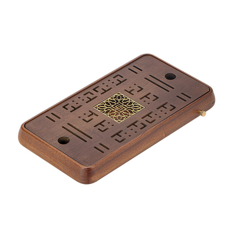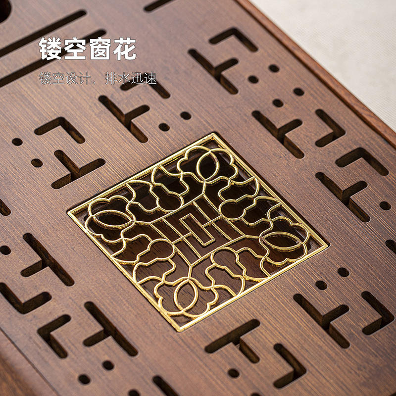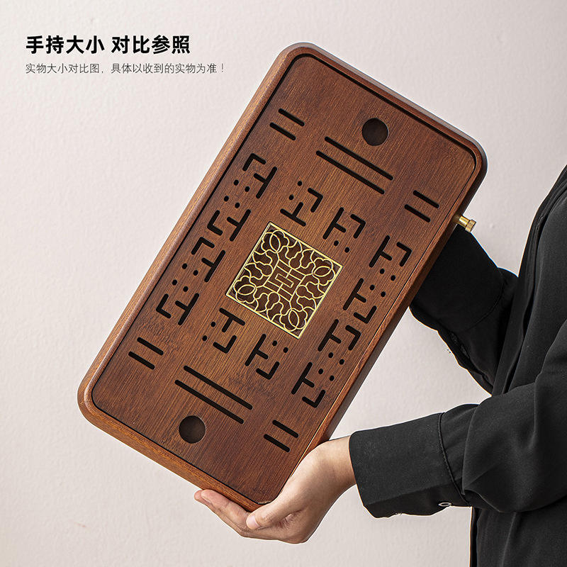ถาดชาไม้เนื้อแข็งธรรมชาติพร้อมระบบระบายน้ำ โต๊ะน้ำชาขนาดเล็กสำหรับใช้ในบ้าน สไตล์จีนแบบใหม่ ถาดรองน้ำ ถาดชาไม้