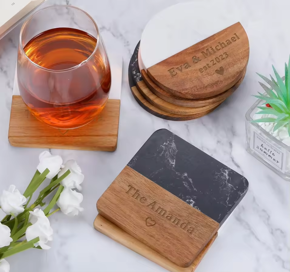 ชุดจานรองแก้วไม้เนื้อแข็งธรรมชาติ สร้างด้วยลายไม้ที่มีความแข็งแรง เหมาะสำหรับการตกแต่งภายในบ้านสไตล์ร่วมสมัย