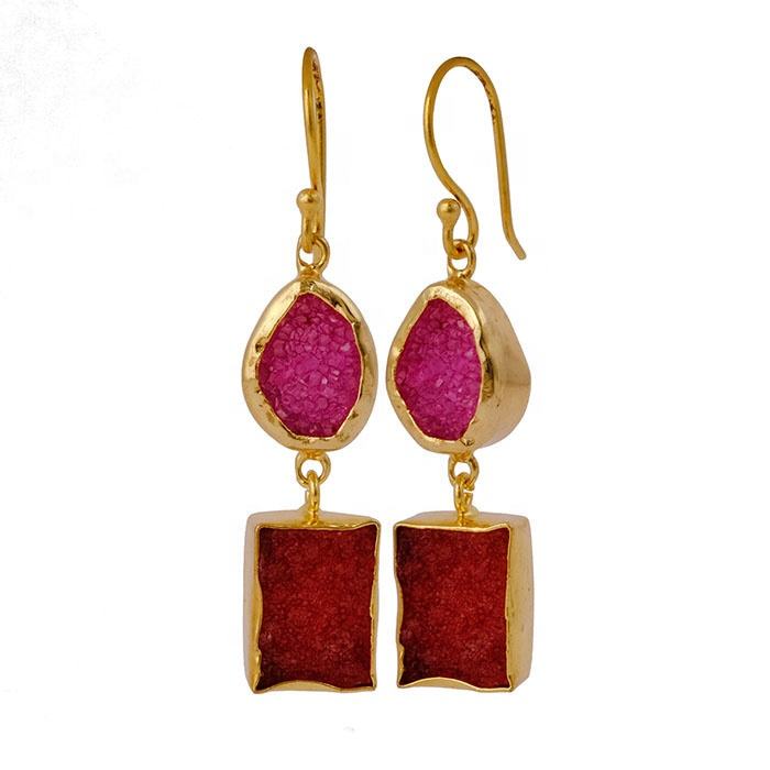 ต่างหูห้อยอัญมณีสีชมพูน้ำตาลอาเกตชุบทองสไตล์แฟชั่นห้อย