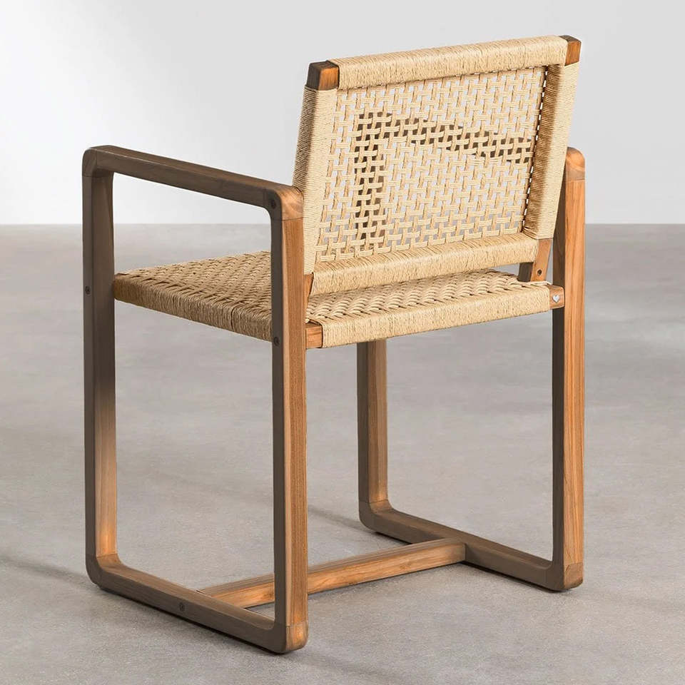 เก้าอี้รับประทานอาหารกลางแจ้งไม้สักธรรมชาติ พร้อมหวายคุณภาพดีที่สุด สีธรรมชาติ
