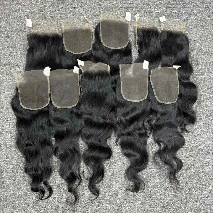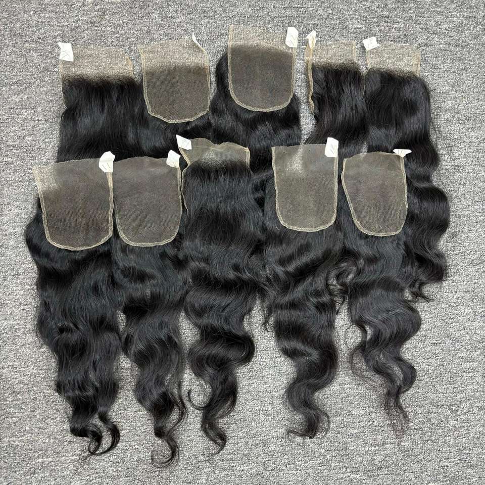 Natural Wave HD Lace Closure 4x4 Hair Extensions Wholesale 100% Virgin Cambodian Non-Remy Human Hair Machine Double Weft VQ Hair