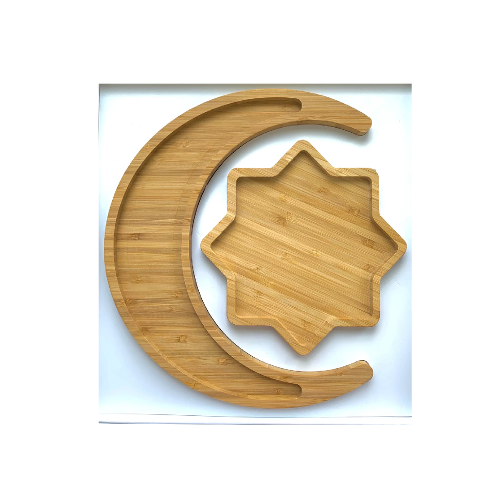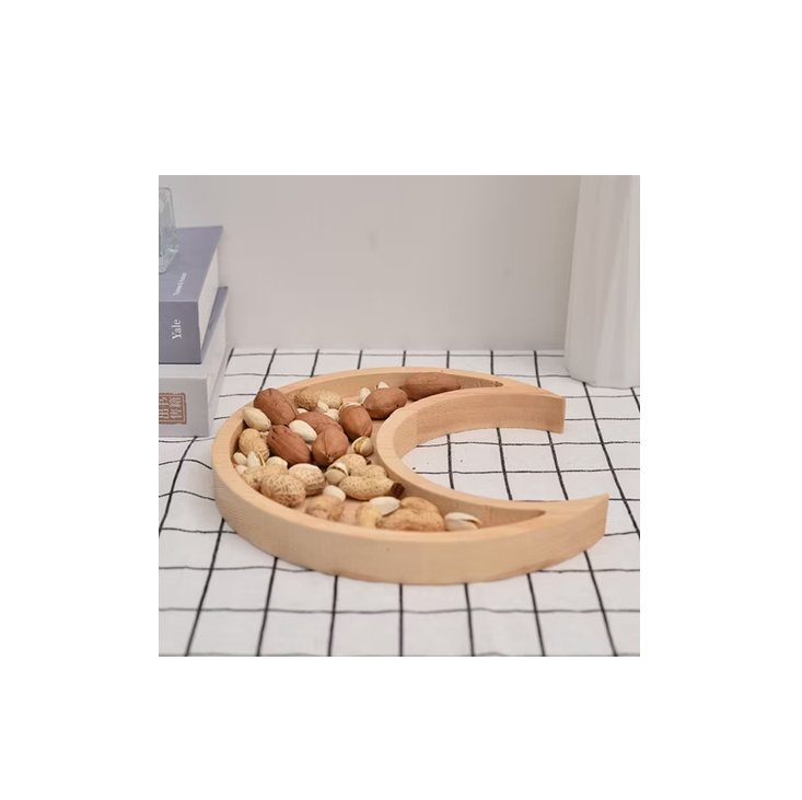 ถาดเสิร์ฟอาหารรูปพระจันทร์และดาวทำจากไม้ธรรมชาติ สำหรับงานอีดมูบารัค