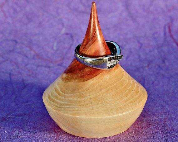 ที่ใส่แหวนทำจากไม้ธรรมชาติผสมผสานกันอย่างลงตัวทำจากไม้ธรรมชาติโดยมีวงแหวนซ้อนตั้งทรงเรียวเรียบ