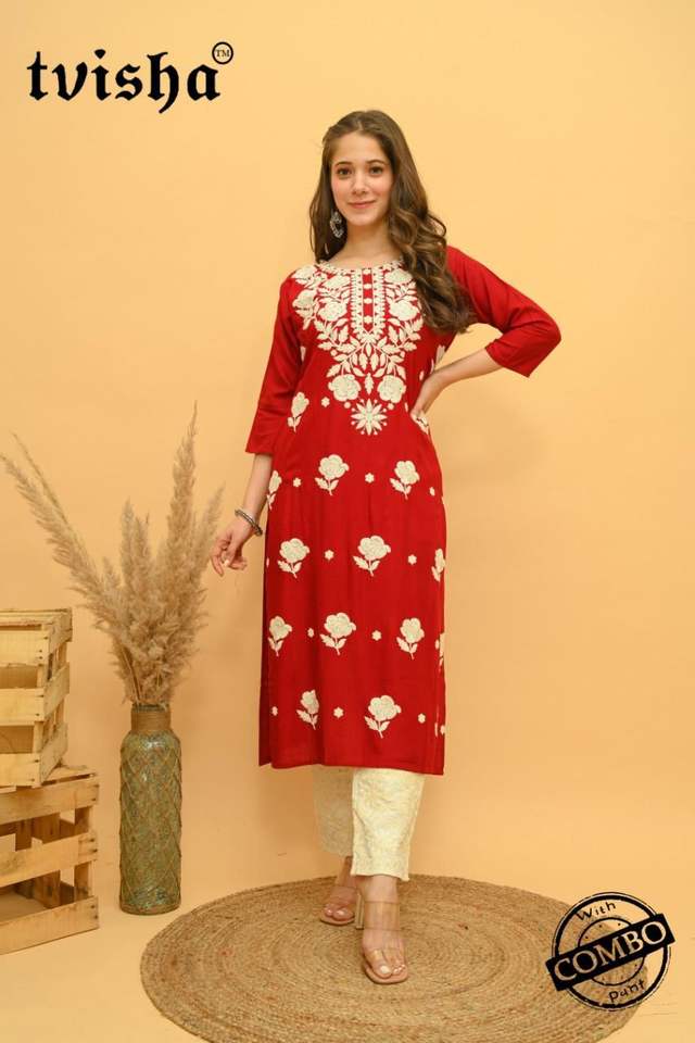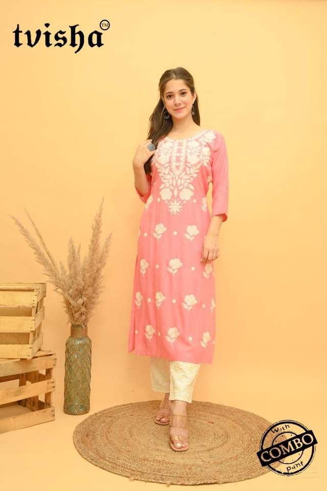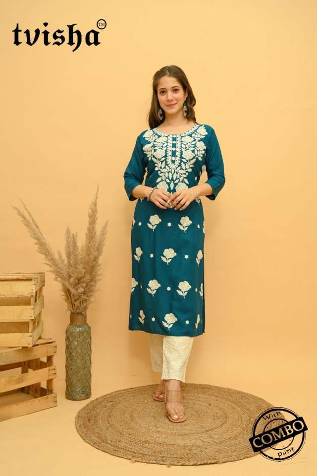 สีเขียวธรรมชาติของงานปักหนัก Kurti พร้อมกางเกงชุดคอมโบ,เรยอน Slub 14กก. ด้านบนและด้านล่างโดยรอยัลส่งออก