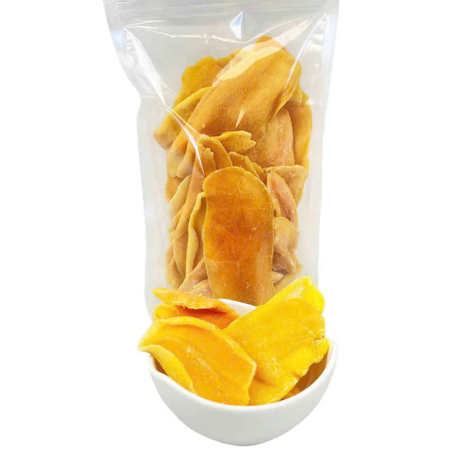 มะม่วงอบแห้งฉ่ำตามธรรมชาติสุกทองตากแดดเพื่อให้เนื้อสัมผัสและกลิ่นหอมเขตร้อน