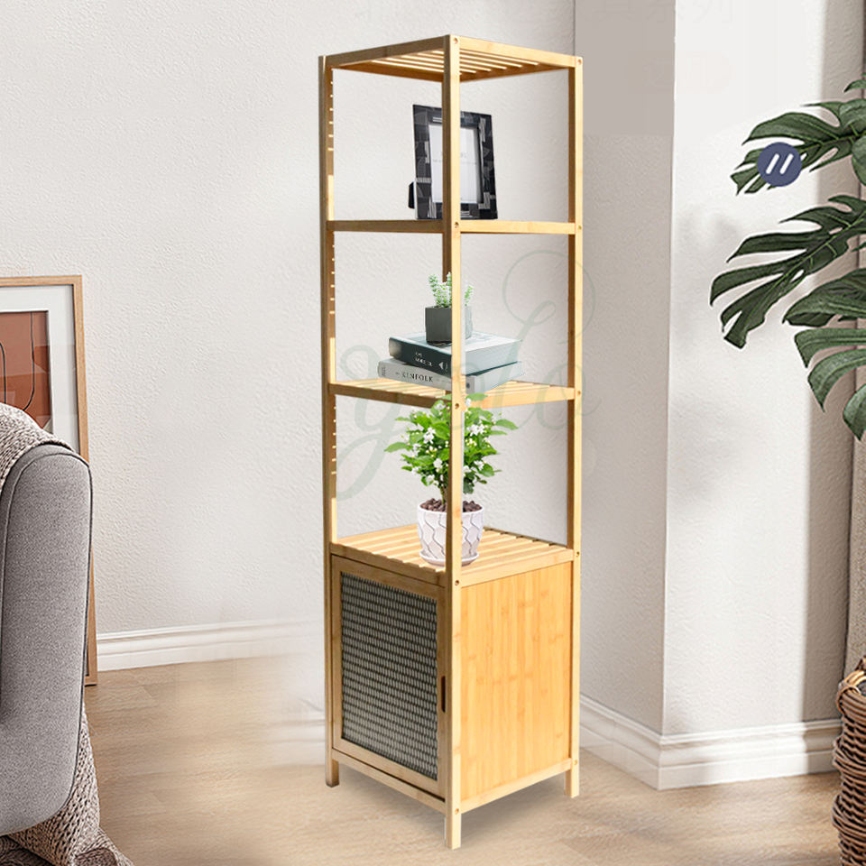 ชั้นไม้ไผ่ธรรมชาติ4ชั้นชั้นชั้นวางไม้ชั้นวางของดีไซน์ใหม่ทันสมัยชั้นวางของไม้สำหรับบ้านห้องนั่งเล่นห้องน้ำ