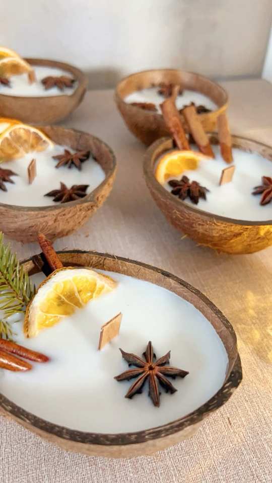 เทียนกะลามะพร้าวเรืองแสงธรรมชาติ | เทียนอีโคทำมือจากเวียดนาม