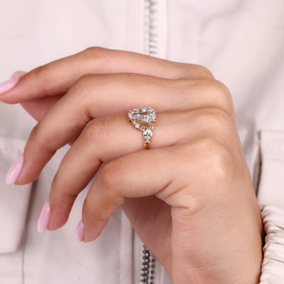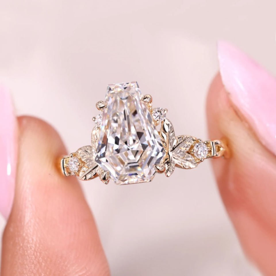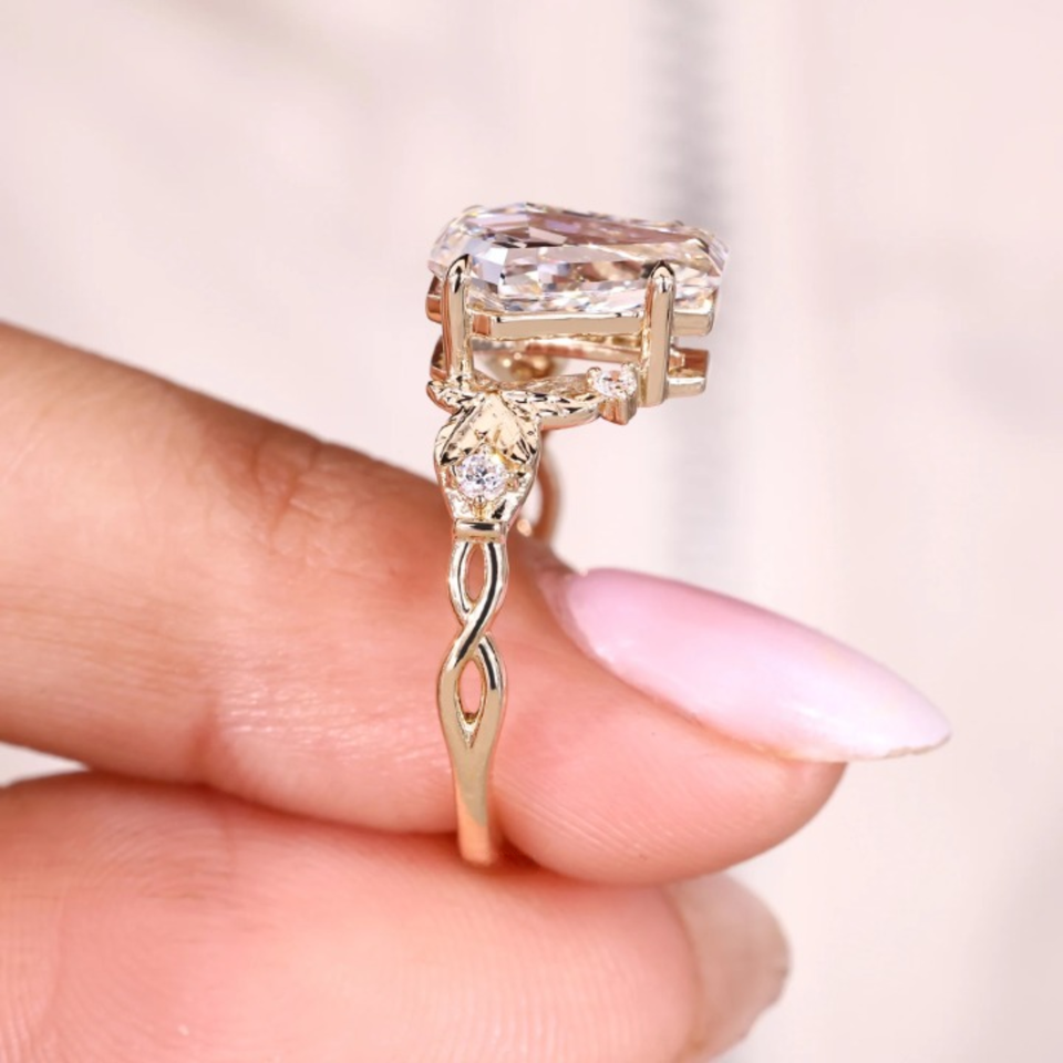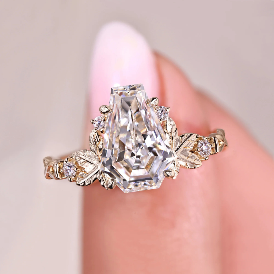 แหวนแต่งงานเพชรทรงโลงศพ แรงบันดาลใจจากธรรมชาติ น้ำหนัก 2.10 กะรัต เพชรเพาะเลี้ยง ทอง 14k เวอร์เมล ดีไซน์เรียบหรู/สปอร์ต สำหรับงานปาร์ตี้