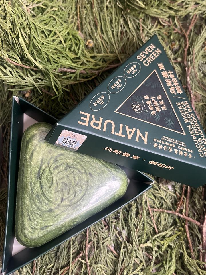 Nature Seven Green Triangle Genuine Soap Bar Platycladus Usman Grass Hair Shampoo for Oil Control Smoothing Anti-Dandruff