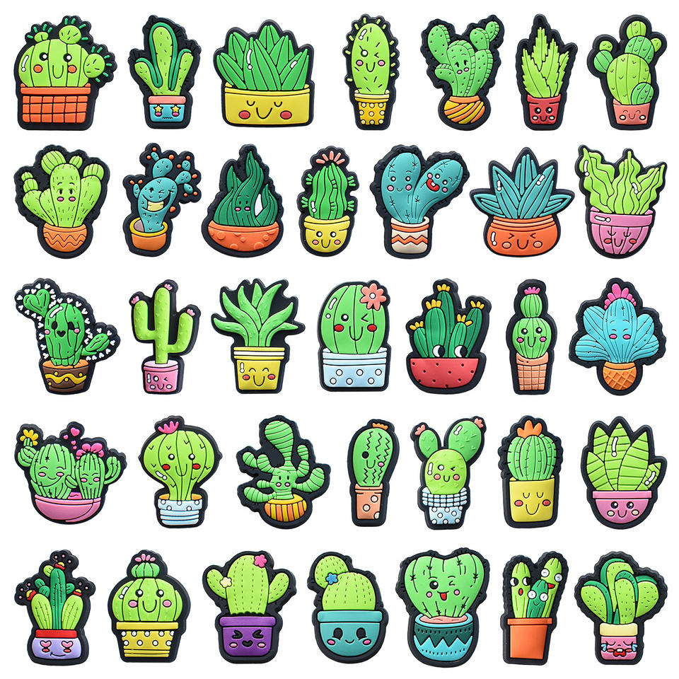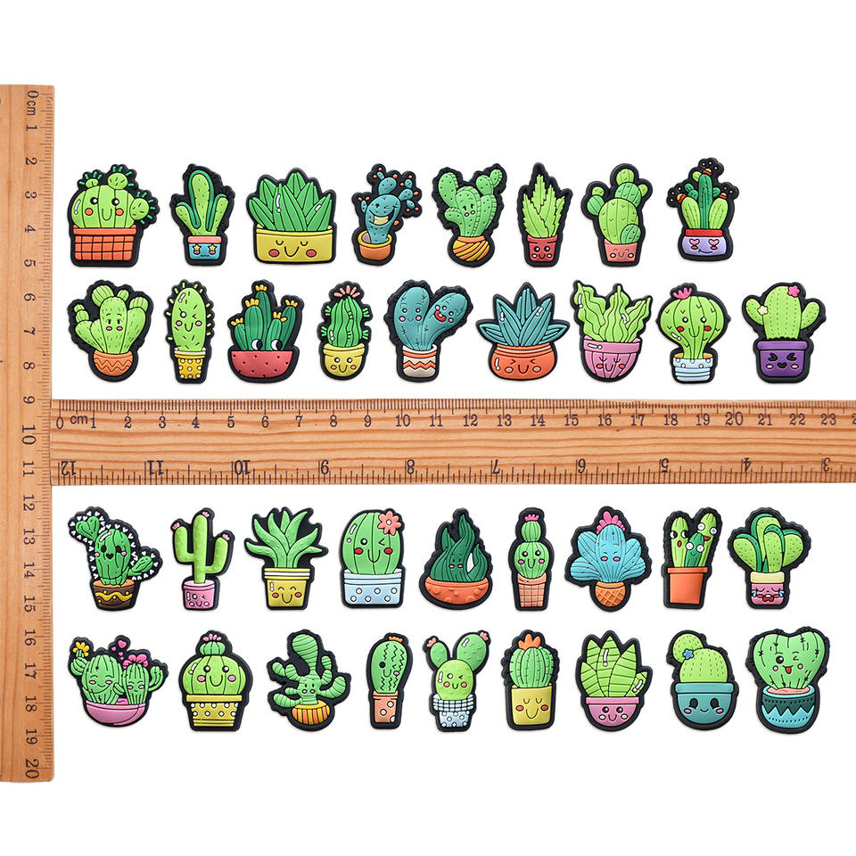 ธีมธรรมชาติ ดอกไม้ 3 มิติ สวยงาม ต้นกระบองเพชรน่ารัก ยางพีวีซีเนื้อนุ่ม รองเท้าแตะ DIY รองเท้าสวน ของตกแต่งรองเท้า