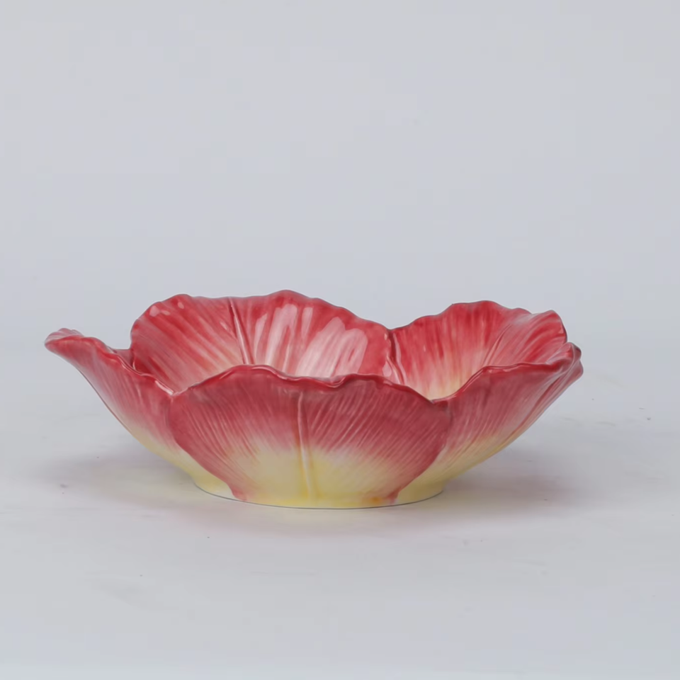 ชุดชามเซรามิกและจานทรงดอกไม้สี่ชิ้นให้สัมผัสของธรรมชาติเหมาะอย่างยิ่งสำหรับการนำออกนอกบ้านในบ้านของคุณ