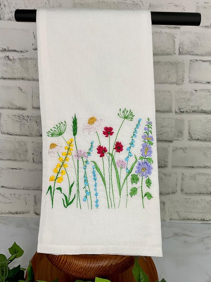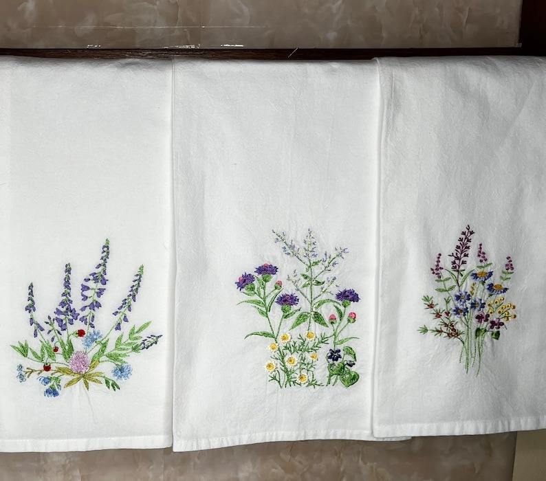 ผ้าเช็ดชา Nature4u ผ้าฝ้าย 100% ใช้ซ้ำได้ ลายปักดอกไม้ป่า เป็นมิตรกับสิ่งแวดล้อม แห้งเร็ว ซึมซับน้ำได้ดี รับสั่งทำตามแบบ