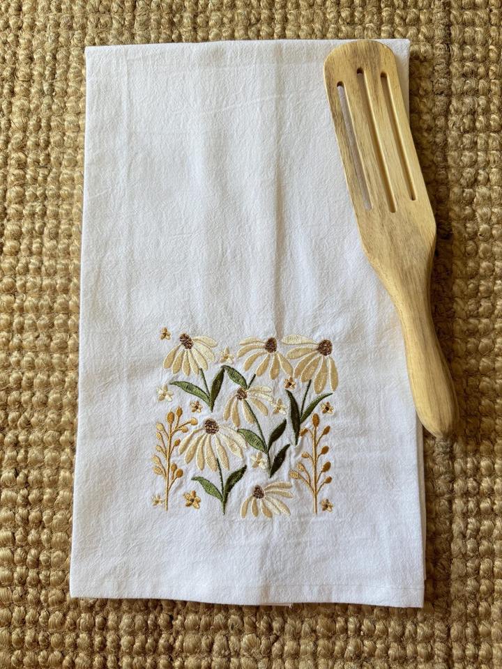 ผ้าเช็ดชา Nature4u ผ้าฝ้าย 100% ใช้ซ้ำได้ ลายปักดอกไม้ป่า เป็นมิตรกับสิ่งแวดล้อม แห้งเร็ว ซึมซับน้ำได้ดี รับสั่งทำตามแบบ