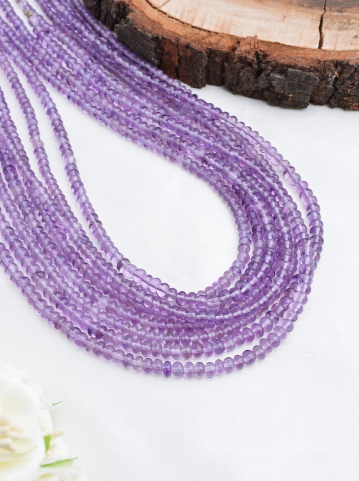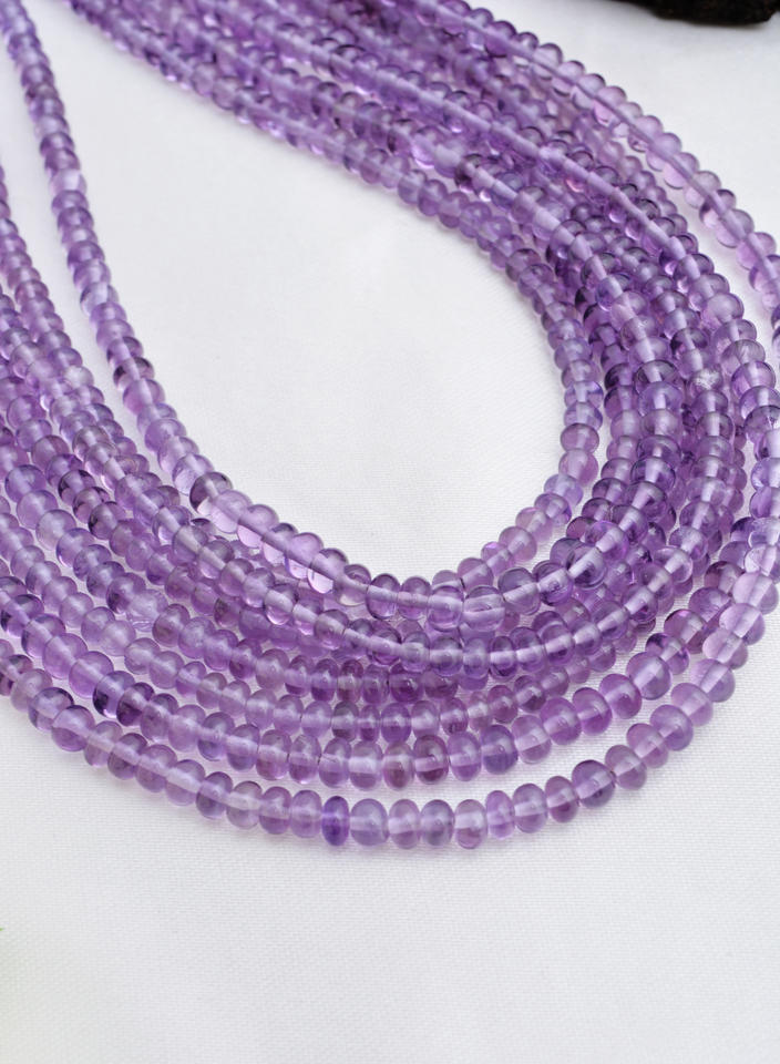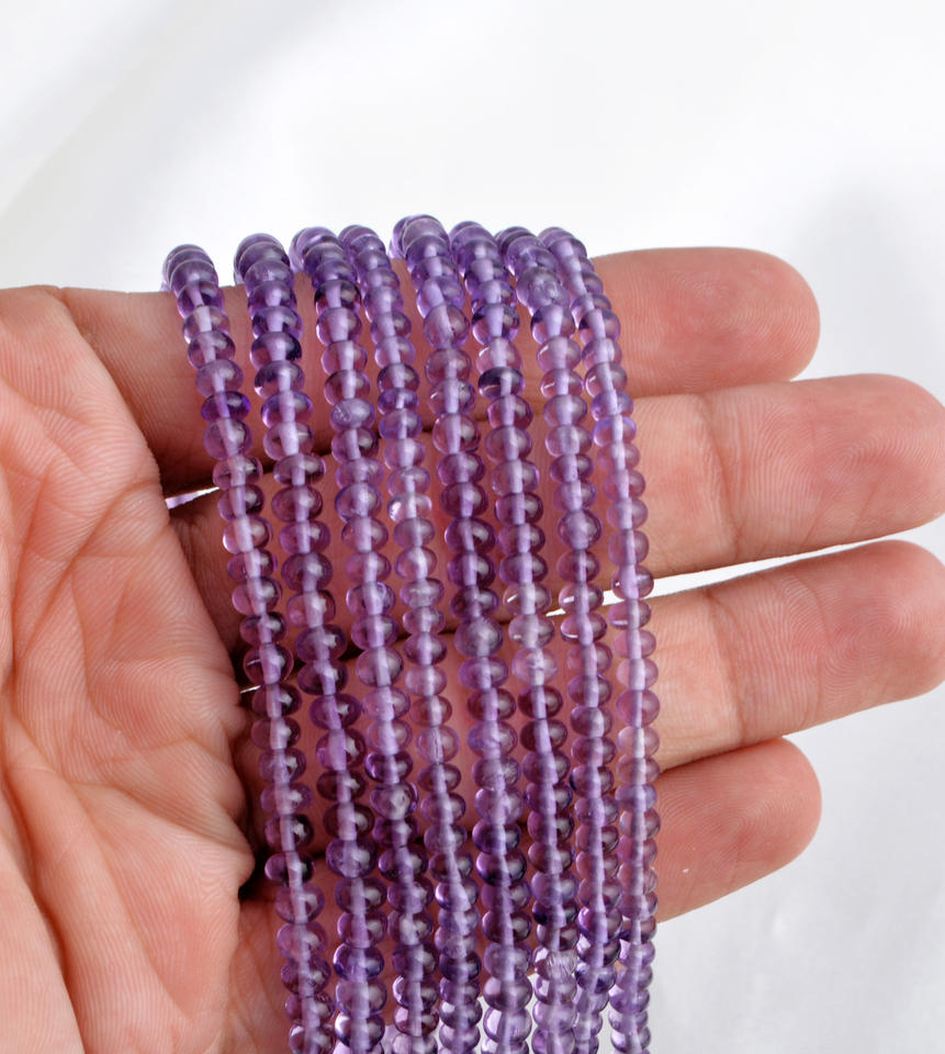 ลูกปัดอะมีทิสต์ธรรมชาติทรงรอนเดลล์เรียบ ขนาด 3 มม. ถึง 4 มม. ลูกปัดอะมีทิสต์ธรรมชาติแบบเรียบ สำหรับทำเครื่องประดับชั้นดี อัญมณี