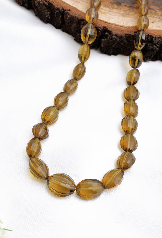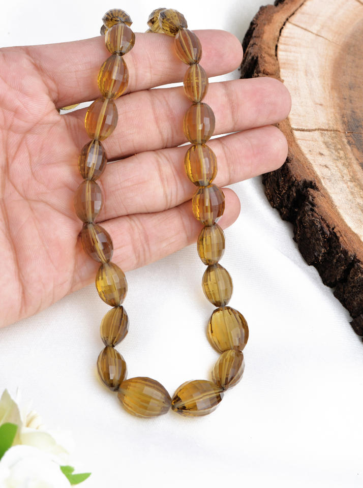 หินควอตซ์เบียร์ธรรมชาติทรงรีเหลี่ยมเพชรพลอย ขนาด 16 นิ้ว สำหรับทำเครื่องประดับชั้นดี 1 เส้น