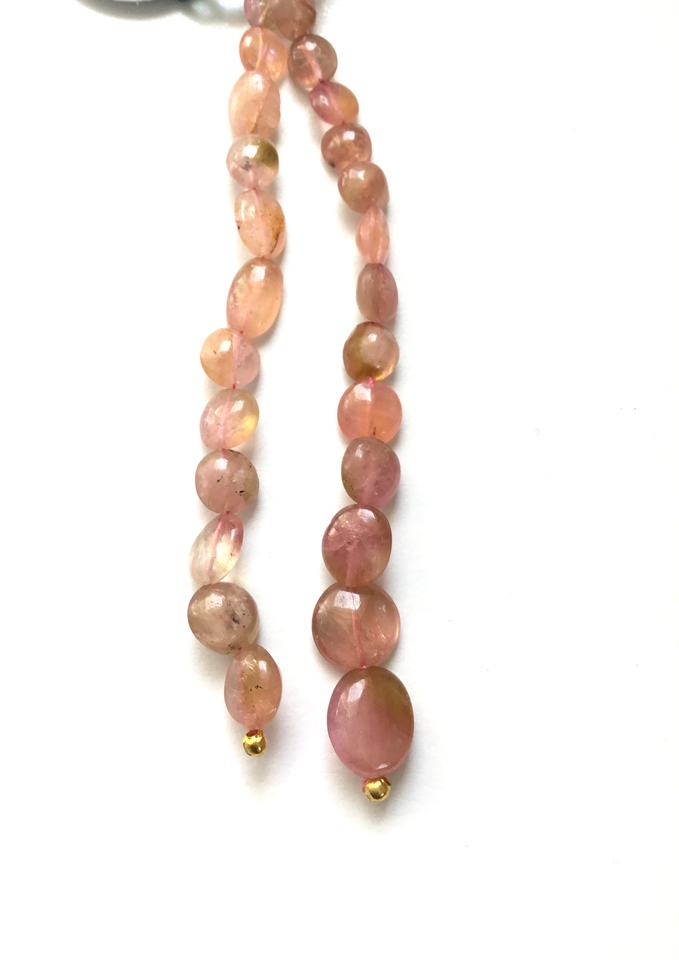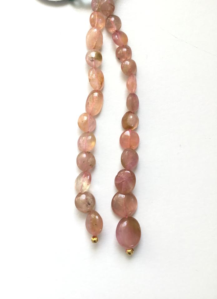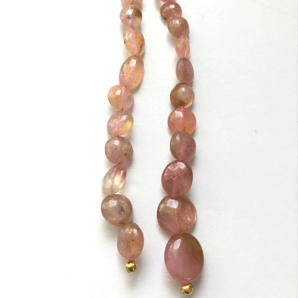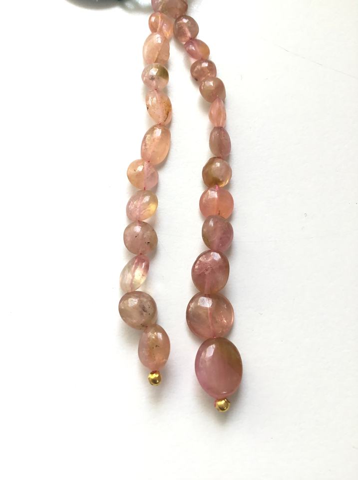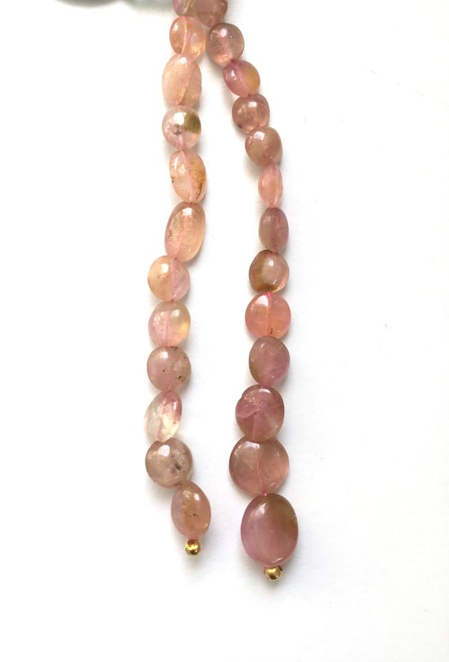 ลูกปัดทัวร์มาลีนสีชมพูอ่อนธรรมชาติ ขัดเรียบ 2 เส้น สำหรับทำเครื่องประดับอัญมณี