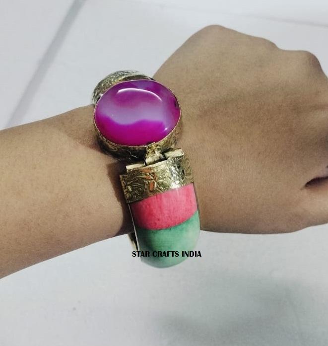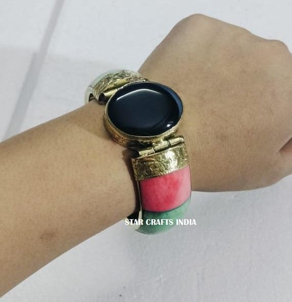 กำไลข้อมือหินธรรมชาติสำหรับผู้หญิงกำไลข้อมือทองเหลือง & กระดูก100% ทำด้วยมือ