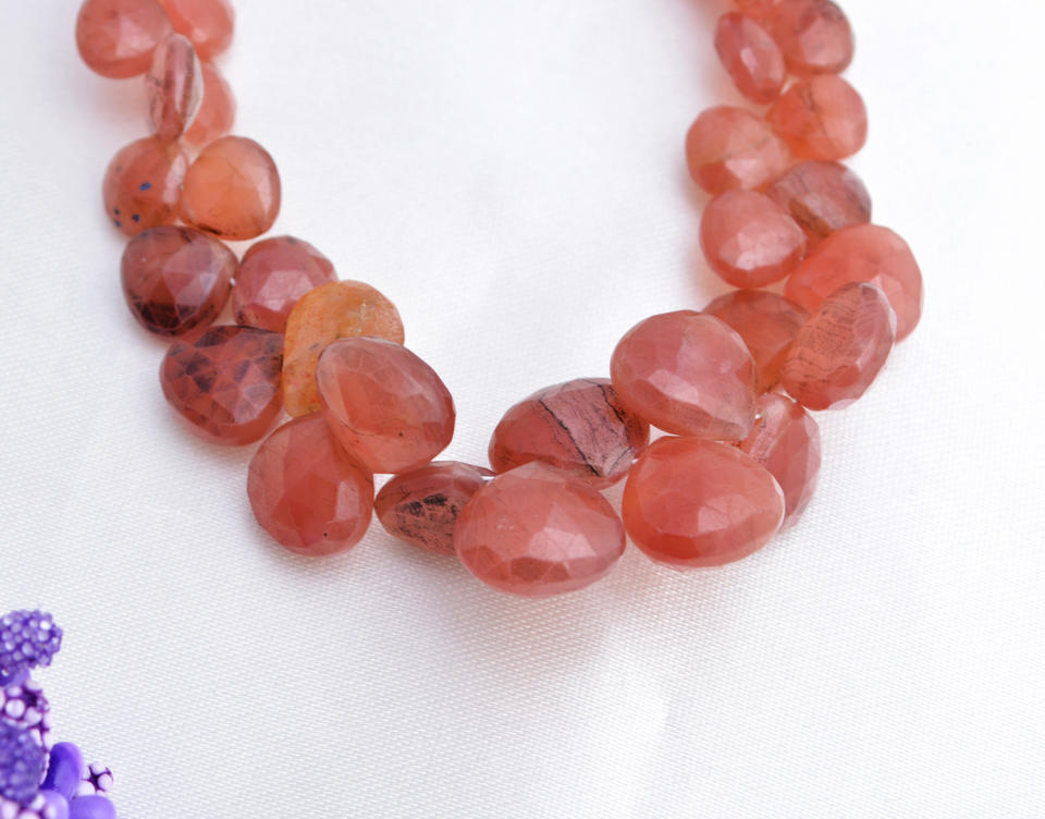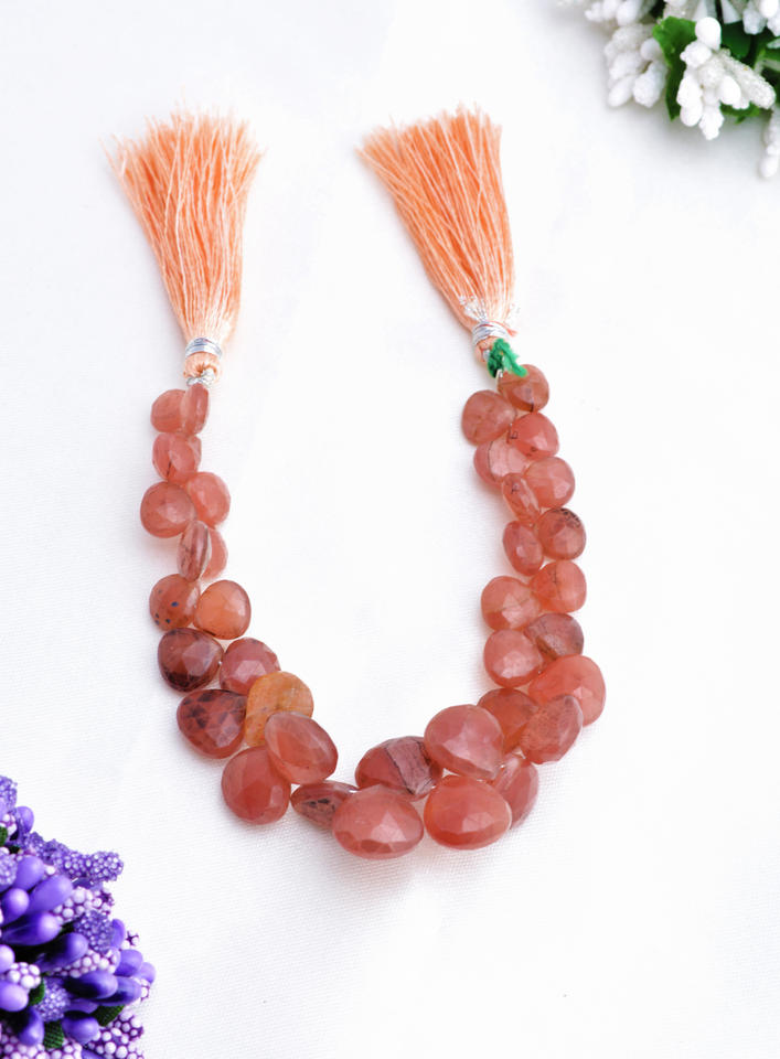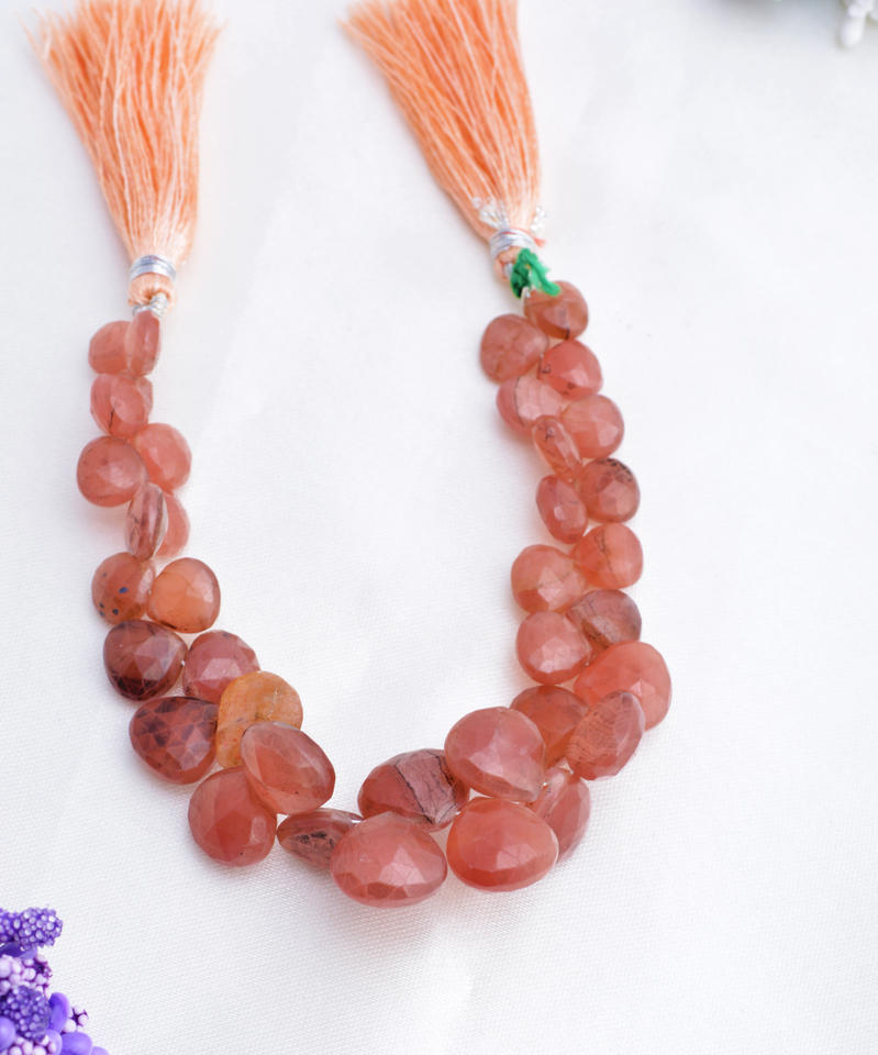 สร้อยคอรูปลูกแพร์เจียระไนจากหินซันสโตนธรรมชาติ l ลูกปัดหินซันสโตนทรงลูกแพร์เจียระไนขนาด 7 นิ้ว สำหรับทำเครื่องประดับอัญมณีชั้นดี