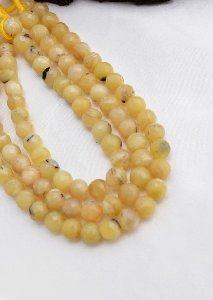 ลูกปัดโอปอลสีเหลืองธรรมชาติทรงกลมเหลี่ยมเพชรพลอย ขนาด 5 มม. ถึง 8 มม. สำหรับทำเครื่องประดับอัญมณีชั้นดี