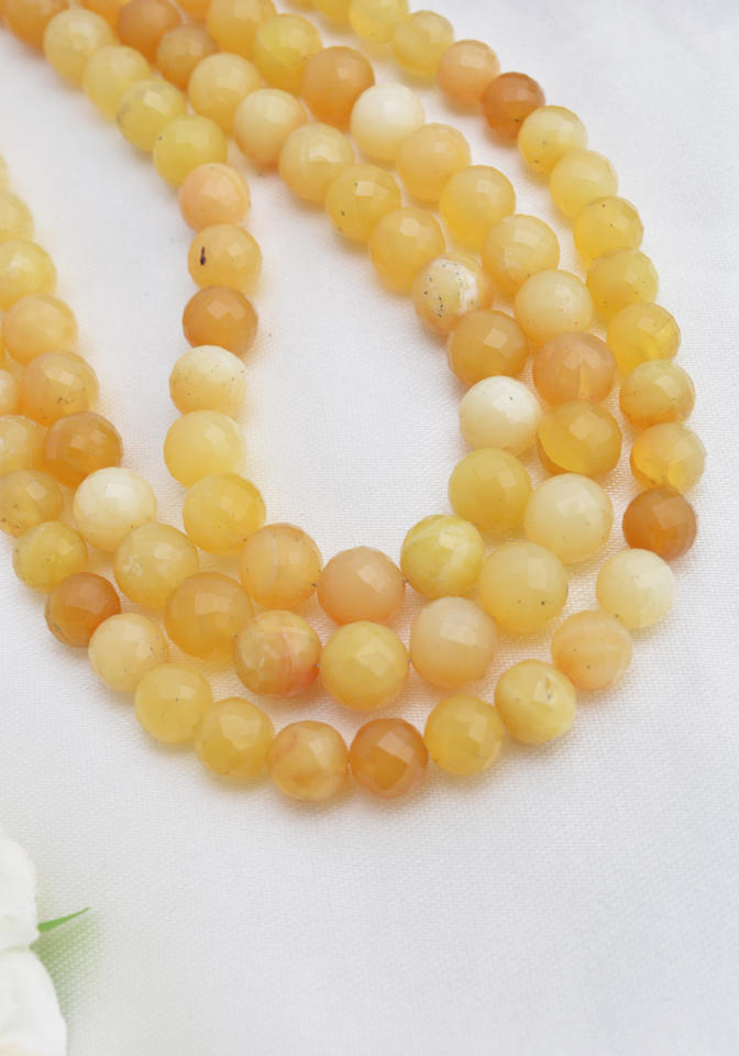 ลูกปัดโอปอลสีเหลืองธรรมชาติทรงกลมเหลี่ยมเพชรพลอย ขนาด 5 มม. ถึง 8 มม. สำหรับทำเครื่องประดับอัญมณีชั้นดี