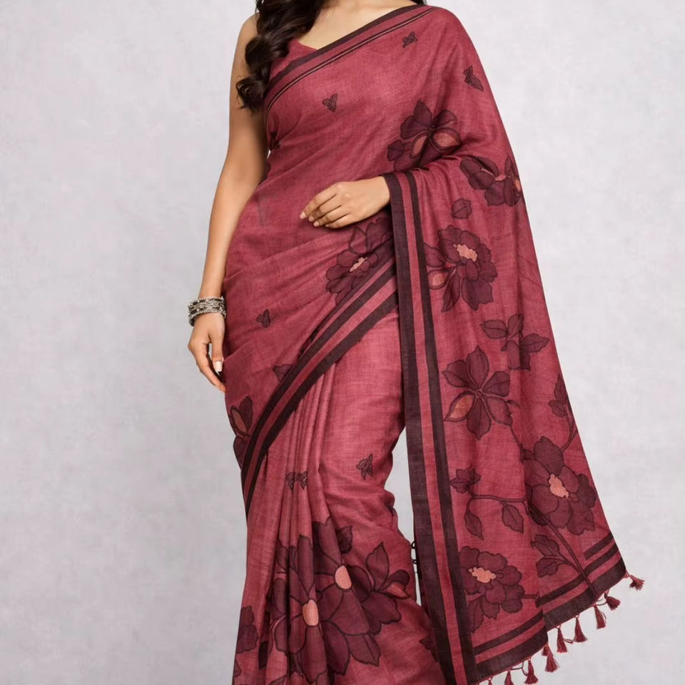 ผ้าซารีเนเจอร์สโกลด์บลูม วิสโคส สำหรับงานเลี้ยงฤดูหนาวแบบดั้งเดิม ซึมซับความชื้นและไม่ยับง่าย