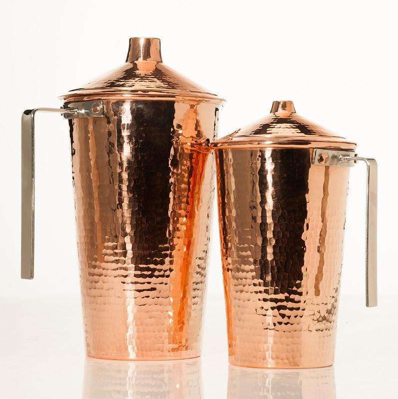 Naturesque เหยือกน้ำข้างเตียงทำจากทองแดงบริสุทธิ์เคลือบแลคเกอร์สเตนเลสเคลือบภาชนะใส่เครื่องดื่มที่เป็นมิตรกับสิ่งแวดล้อมขนาด1000มล. โลหะทนทาน