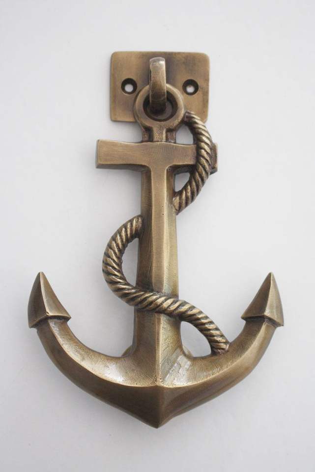 ที่เคาะประตูโลหะรูปสมอเรือที่ทำจากเหล็กแบบชนบท-ที่เคาะตกแต่งแนวชายฝั่งสำหรับการสั่งซื้อจำนวนมาก