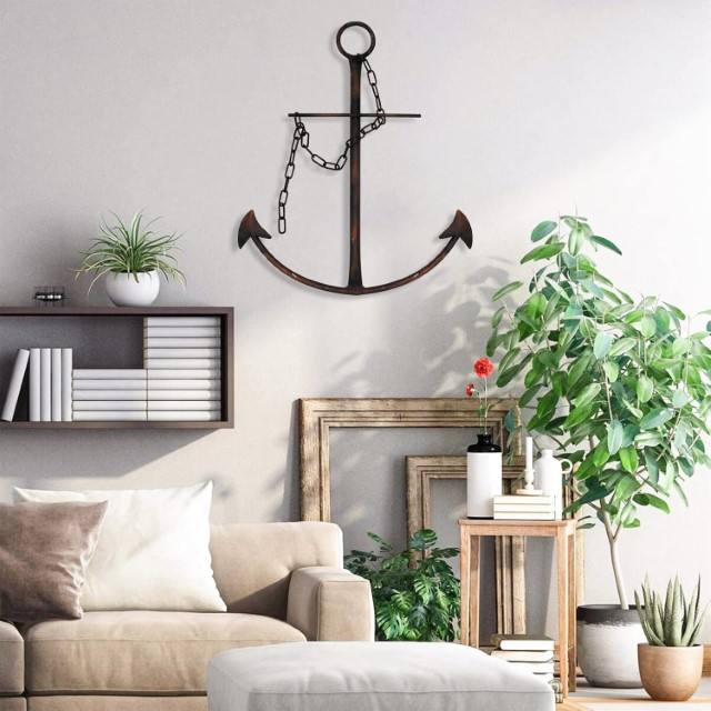 สมอทะเลตกแต่งผนังศิลปะโลหะโบราณพร้อมโซ่ตกแต่งบ้านไร่สไตล์วินเทจของตกแต่งบ้านที่แขวนติดผนัง