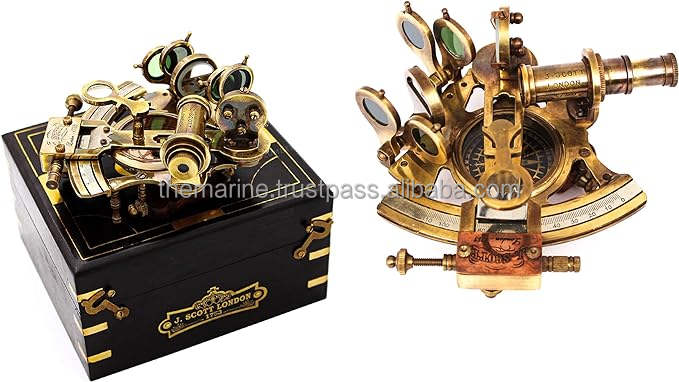 เข็มทิศโบราณทองเหลืองแบบเรือเดินสมุทร พร้อมเข็มทิศในตัว วินเทจ เข็มทิศ J. Scott แบบเรือเดินสมุทร พร้อมกล่องไม้