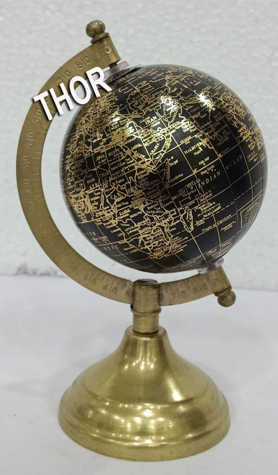 ลูกโลกทองเหลืองโบราณของทะเลทำด้วยมือสีดำแผนที่โลกของตกแต่งด้วยฐานอลูมิเนียมของขวัญภูมิศาสตร์