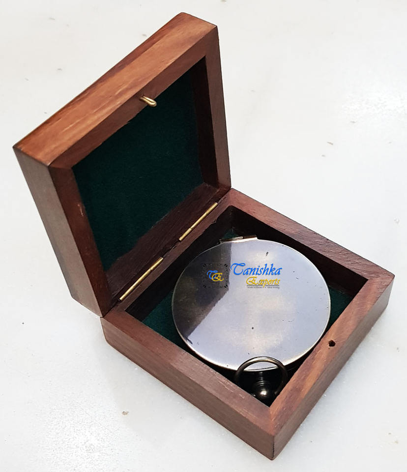 กล่องไม้และเครื่องมือนำทางโซ่สีน้ำตาลสำหรับค้นหาทิศทางเข็มทิศกระเป๋าแบบเรียบทำจากทองเหลืองแบบชาวเรือดีไซน์สมอเรือ