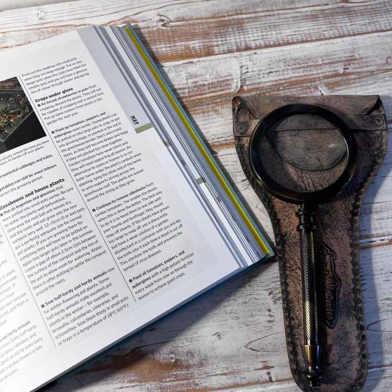 แว่นขยายแบบพกพาทำจากทองเหลืองทะเลพร้อมกระเป๋าหนังที่มีความทุกข์การตกแต่งทางทะเล