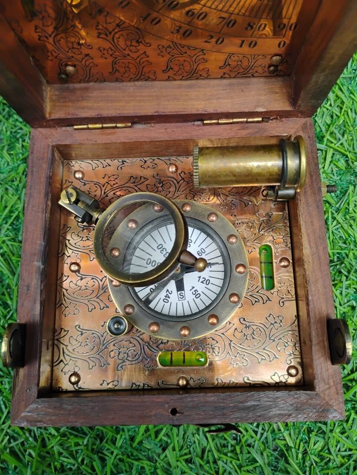 Antique Nautical Brass Metal Crafts London Design Direction Compass Telescope Magnifier Glass Polished Style Marine Master Box