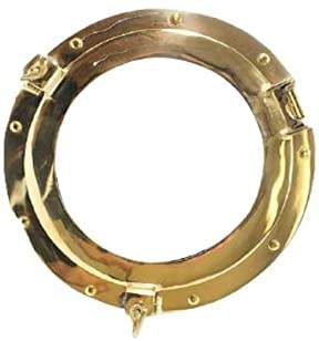 ลายเรือโจรสลัด9 "ประดับด้วยทองเหลืองลายเรือช่องพอร์ต | ของตกแต่งบ้านริมทะเลกัปตัน