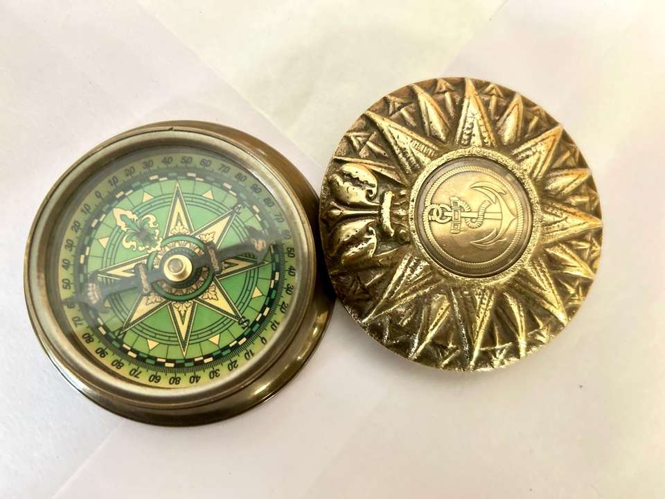 เข็มทิศกระดาษแข็งทองเหลืองทะเลน้ำหนักสมอเรือพร้อมกล่องไม้เข็มทิศโบราณ