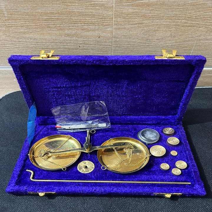 เครื่องชั่งทองเหลืองแบบโบราณสำหรับชั่งน้ำหนัก พร้อมตุ้มน้ำหนัก 7 ชิ้น ดีไซน์โบราณ เหมาะสำหรับช่างยาหรือช่างอัญมณี ใช้เป็นของขวัญ