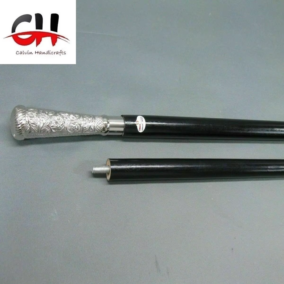 ด้ามจับหัวเสาสีเงินดีไซน์เนอร์จากการเดินเรือทำจากทองเหลืองไม้เท้าไม้เท้าสีดำเป็นของขวัญ