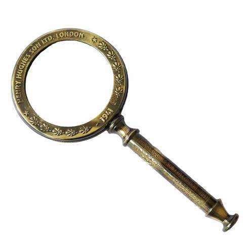 แว่นขยายทองเหลืองสำหรับตั้งโต๊ะพร้อมพื้นผิวการตกแต่งทางทะเล