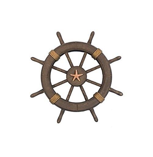ล้อเรือไม้คลาสสิกแนววินเทจสีเทาแบบเรียบง่ายพร้อมเชือกสมอเรือบ้านชายหาดมหาสมุทร