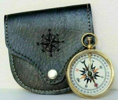 เข็มทิศกระเป๋าแม่เหล็กทองเหลืองสีทองทะเลพร้อมเคสหนังสีดำเข็มทิศหัตถกรรม Calvin