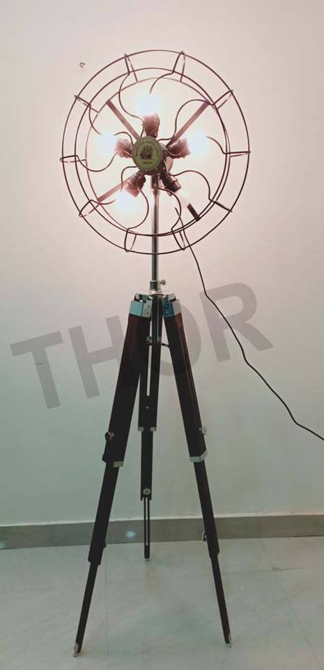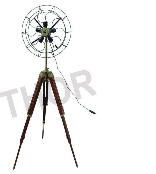 Nautical Spot Light Fan Floor Lamp Tripod Wooden Stand Home Decorative Item