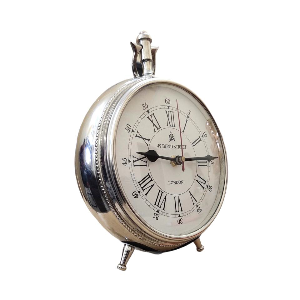 นาฬิกาตั้งโต๊ะโครเมี่ยมสีเงินเงาวาวนาฬิกาตั้งโต๊ะที่ไม่ซ้ำใครทันสมัยสำหรับติดผนังของขวัญวันเกิดงานขึ้นบ้านใหม่สำหรับเขา