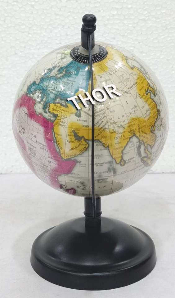 ลูกโลกตั้งโต๊ะ แผนที่โลก ของตกแต่งโต๊ะทำงาน สีขาว ลูกโลกหมุนได้ พร้อมฐานไม้สีดำ