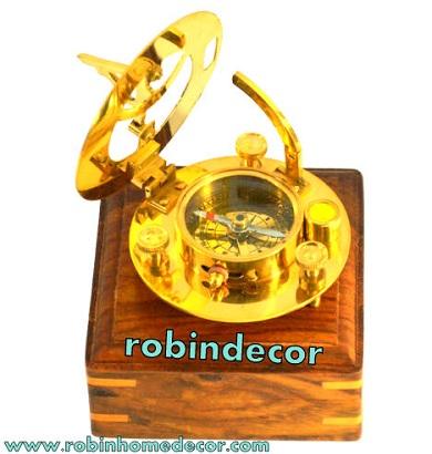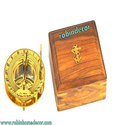 3 "ทองเหลืองนาฬิกาแดด-กล่องไม้-เข็มทิศทางทะเล