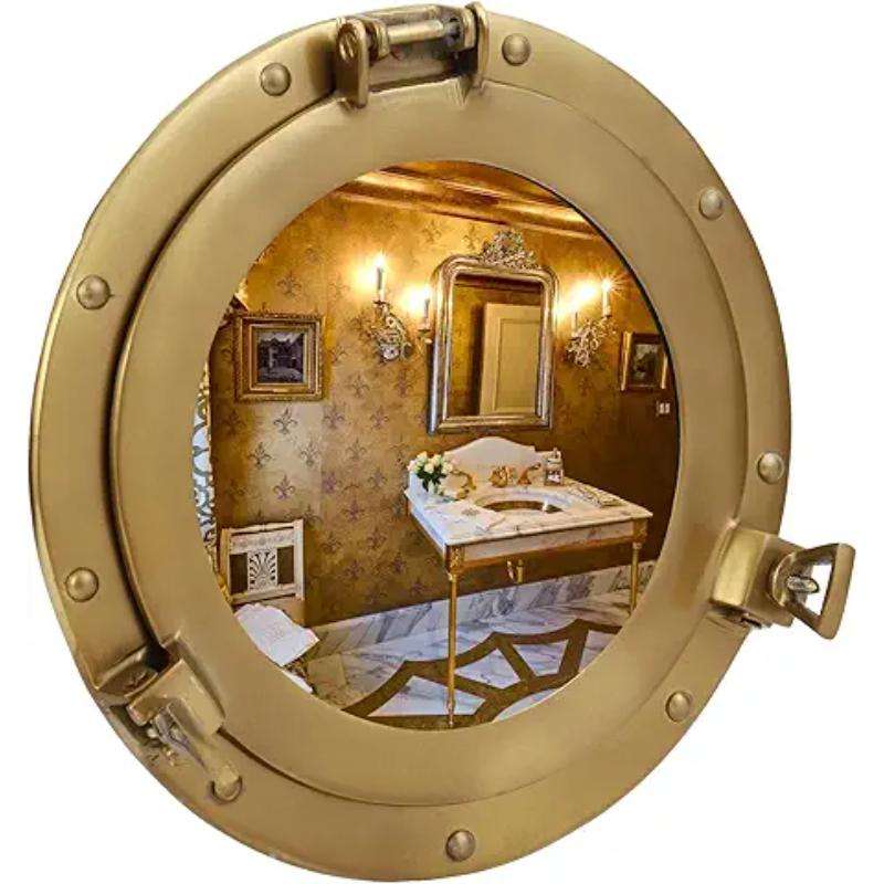 กระจกติดผนังลายทะเลกระจกแขวนออกแบบโลหะทองเหลืองโบราณสำหรับตกแต่งบ้านดีไซน์แบบโบราณ
