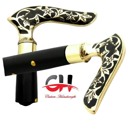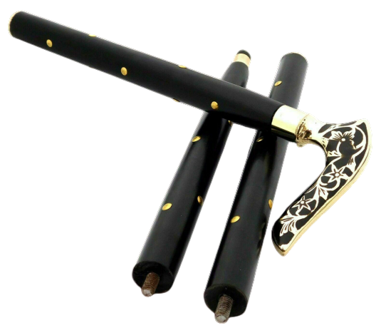 ไม้เท้าเดินทางทำจากไม้สไตล์โบราณ พร้อมด้ามจับทองเหลืองแท้ สำหรับผู้สูงอายุ สีดำ