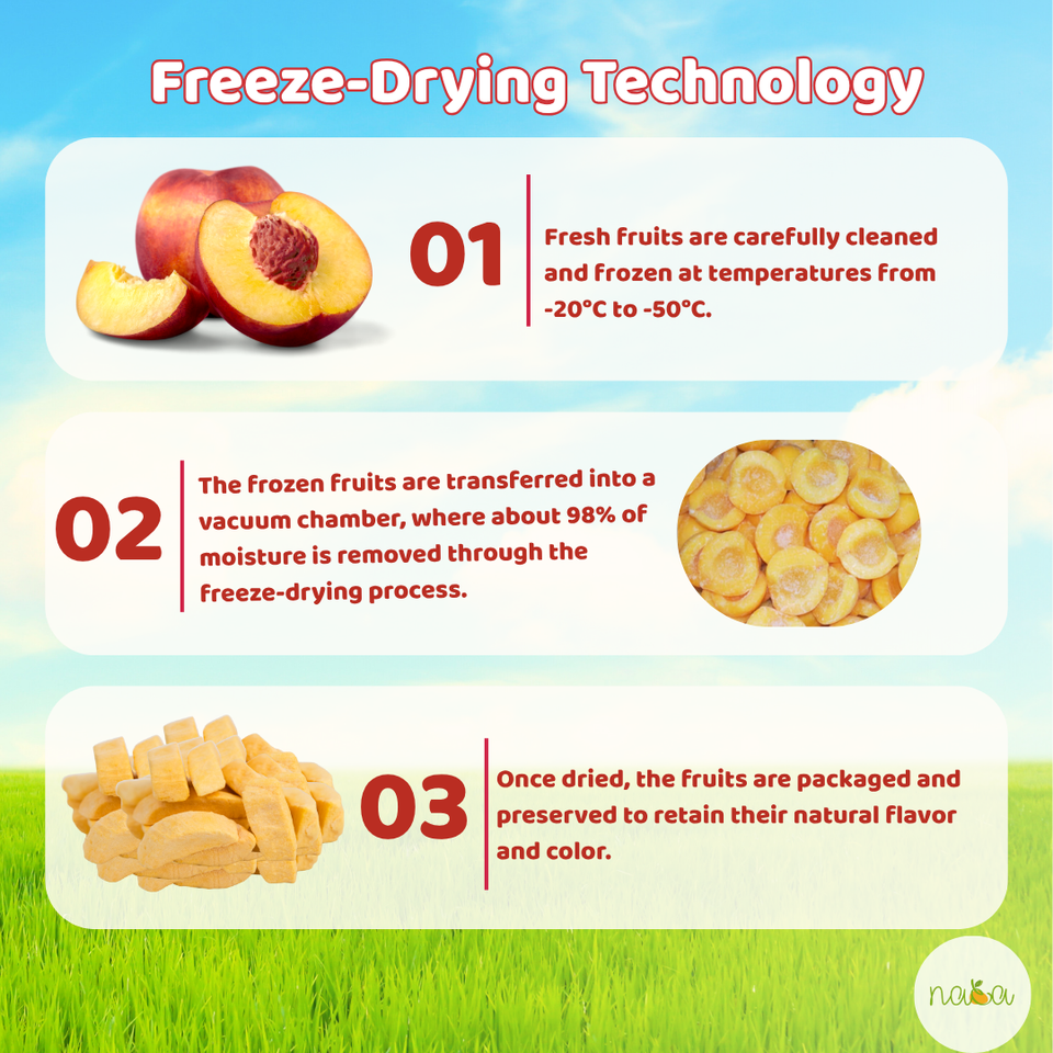 นาวา ชิปพีชอบแห้ง รสหวานธรรมชาติ 100% ขนมผลไม้กรุบกรอบ 18 กรัม/ถุง บรรจุภัณฑ์แบบขายส่ง-กระบวนการอบแห้งแบบแช่เยือกแข็ง ไม่มี