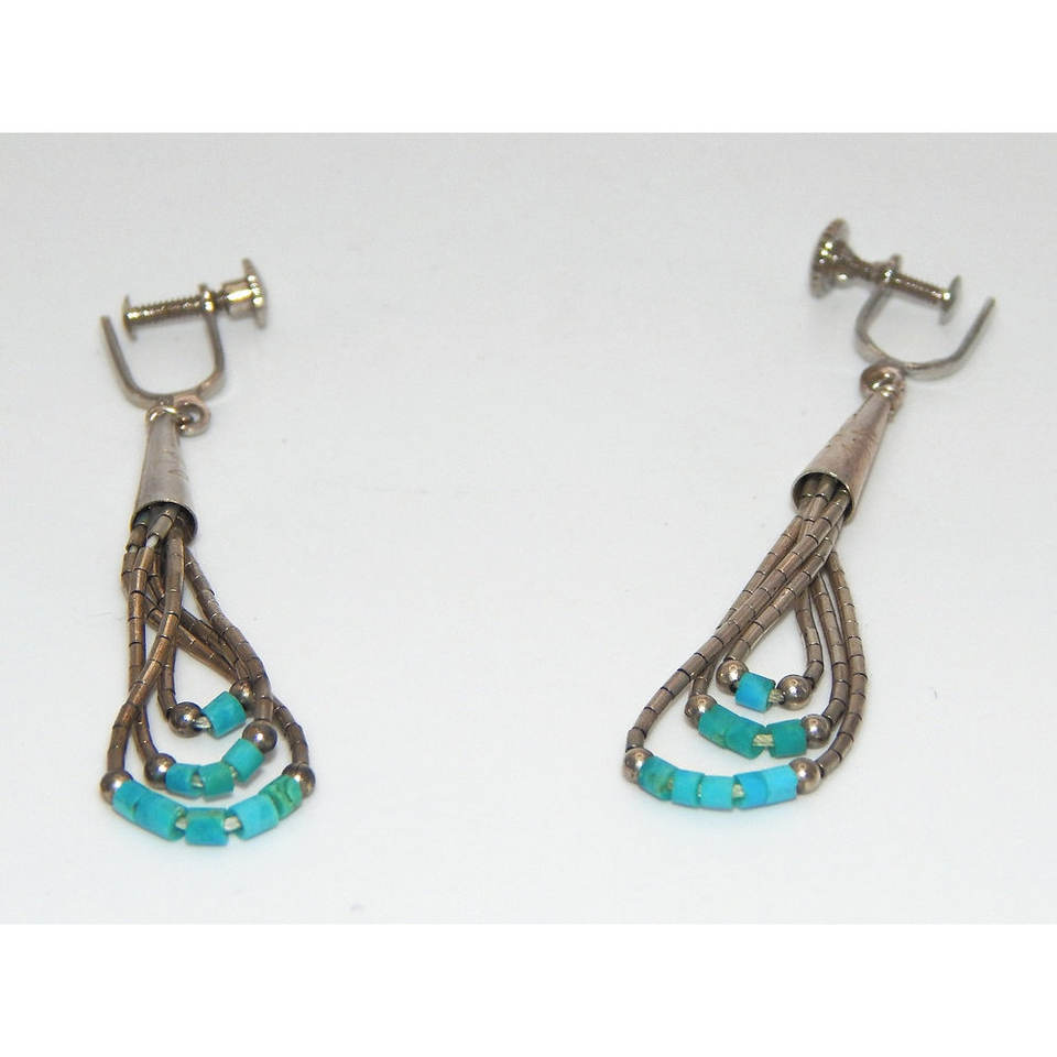 Navajo. 925สเตอร์ลิงเงิน3ชั้นห้อยน้ำตก & ลูกปัดสีฟ้าคราม