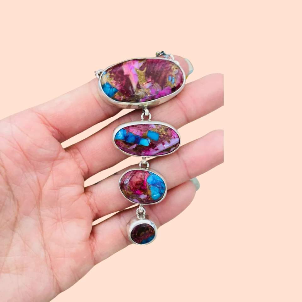 ชื่อผลิตภัณฑ์:จี้โมฮาวีสีเงินสเตอร์ลิงและสีชมพูพร้อมโซ่